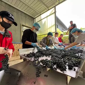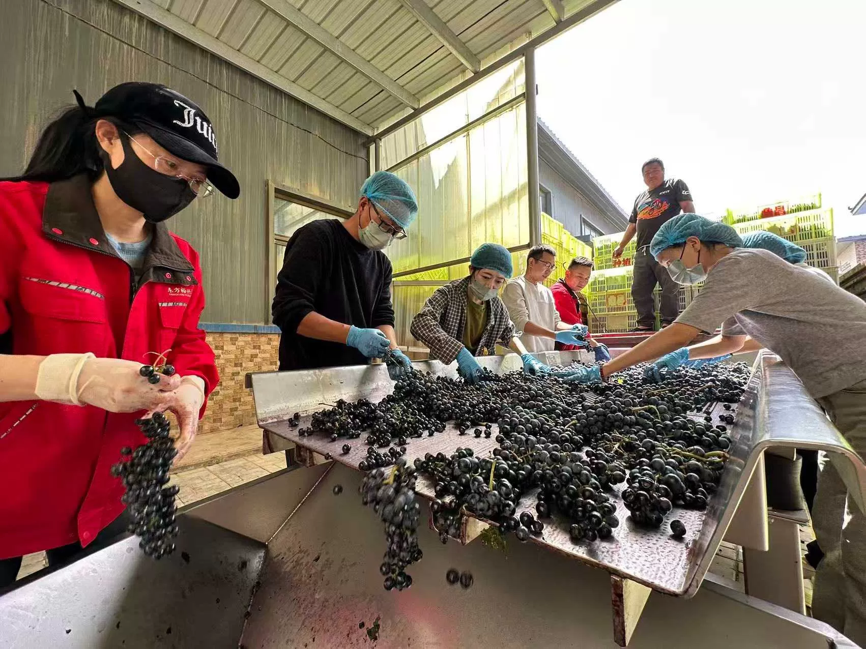 为确保葡萄品质,我们全程用人工采收代替机械化,经验丰富的果农手起刀落,半小时内已输送至生产链条。别人追求吨速,我们追求“零破皮率”,因为任何一道裂缝,都会让风味提前“泄密”。