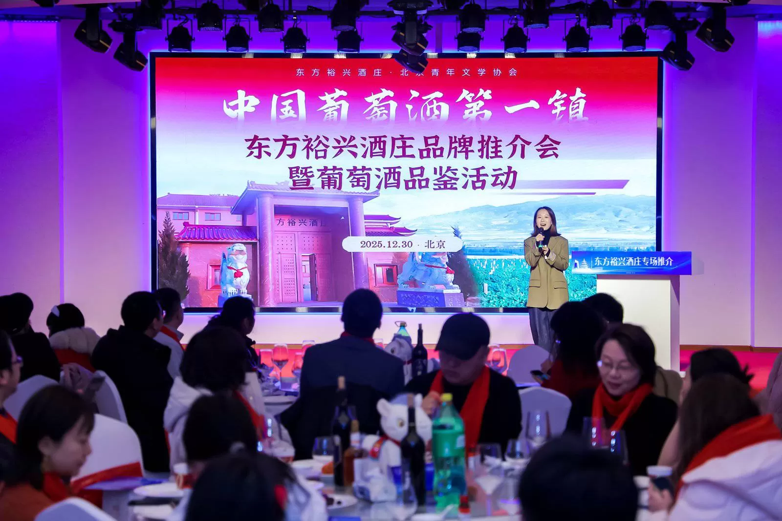 12月30日晚,宁夏东方裕兴酒庄品牌推介会暨葡萄酒品鉴活动在北京朝阳区醉库国际文化创意园圆满举行。本次活动由东方裕兴酒庄与北京青年文学协会联合举办,吸引了来自文学、文化、影视界的青年代表、作家、学者等100余人参与。以酒为钥,以文为韵,在葡萄酒与文字之间,展开了一场别具意蕴的跨界交流——